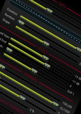 Think about this: up to 100 separate delay taps that can be either rigidly time synched OR completely randomized. Go from vocoderish resonation to unusual, non-linear, reverby sounds. Control the volume of the head of the delay or the tail! Randomize panning! Control randomized "clumping" through a logarithmic curve. Use it as a non-linear room simulator (especially if you're a fan of pre-delay). Affect the phase of individual taps. Add a regenerative delay that only plays back ONLY the sound of the taps and can be placed anywhere over 2000 ms with control over its own feedback and phase!